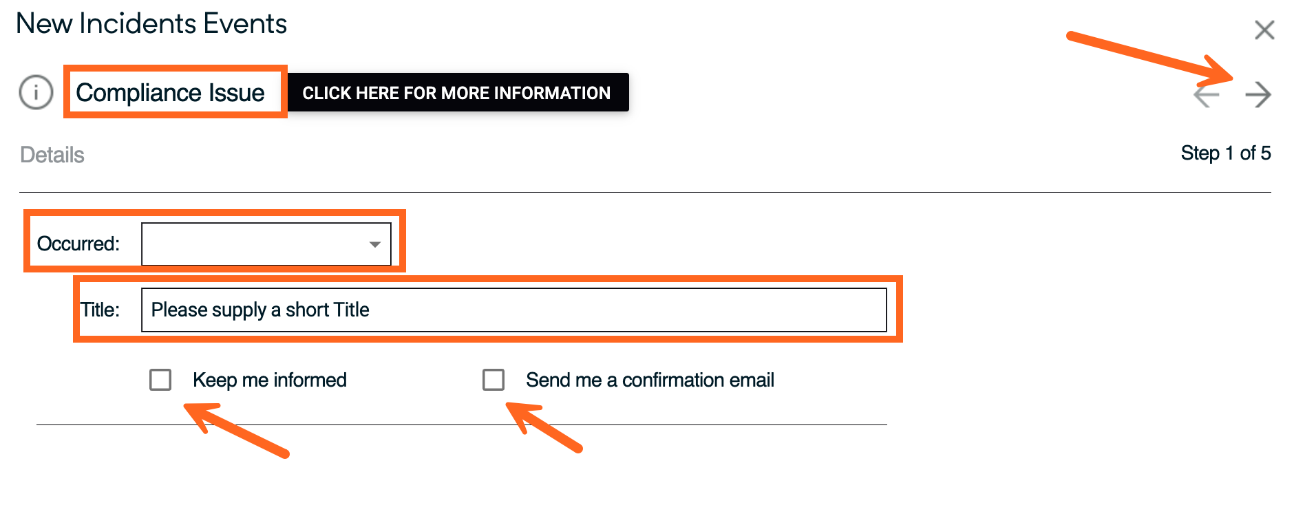 Click the Next icon to display the next Step of the creating a new Event process. |
