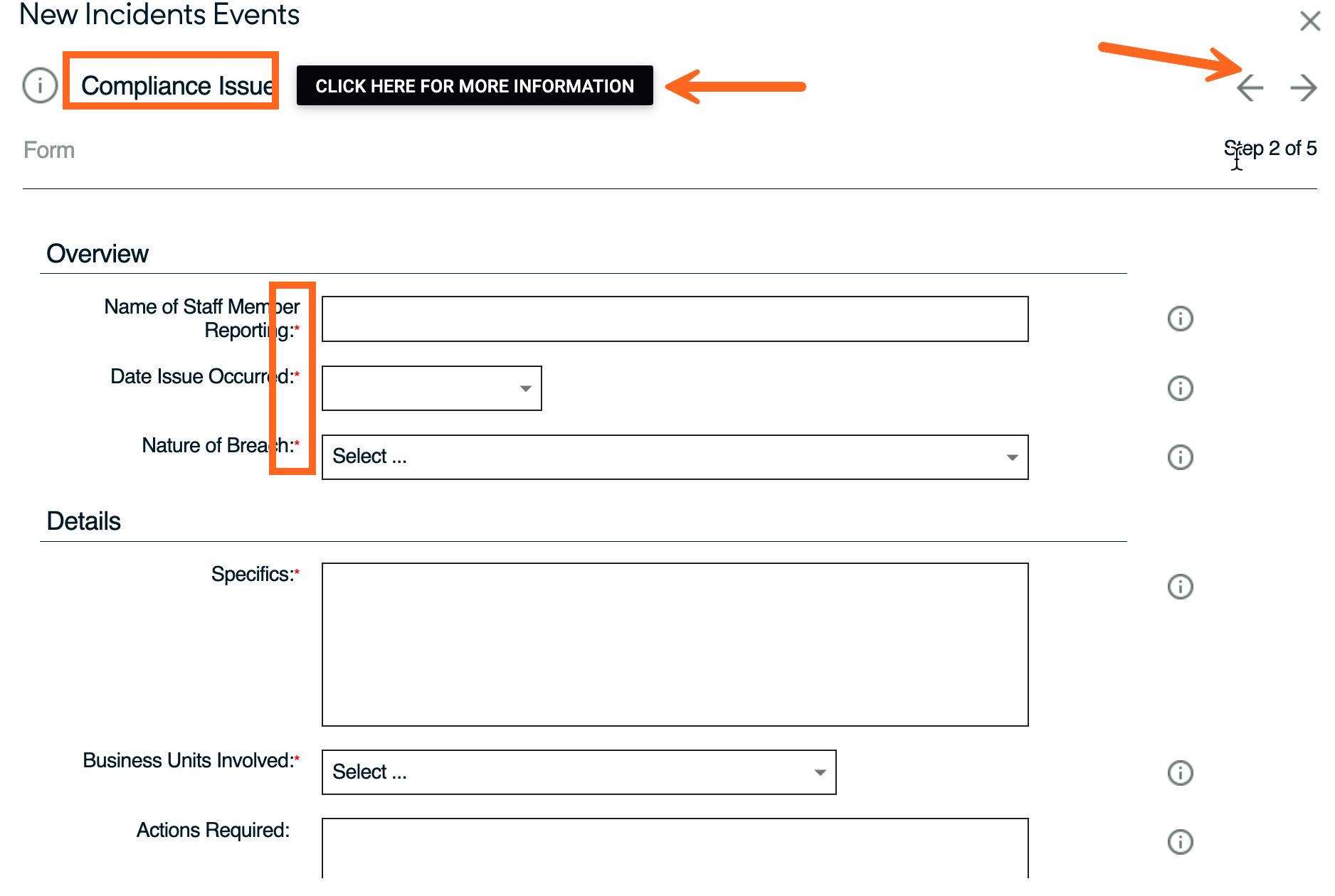 This button will only appear if this Event Type has further instruction for you to follow. Click this button to display those further instructions for creating this Event. |