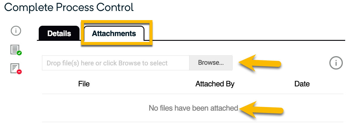To add an attachment, click the Attachments 1 tab. Drop file(s) in the Browse field, or click Browse 2 to locate and select the file(s) you wish to attach. Files can be also be attached one at a time. After a few seconds the files will re-appear into the File attachment list 3.