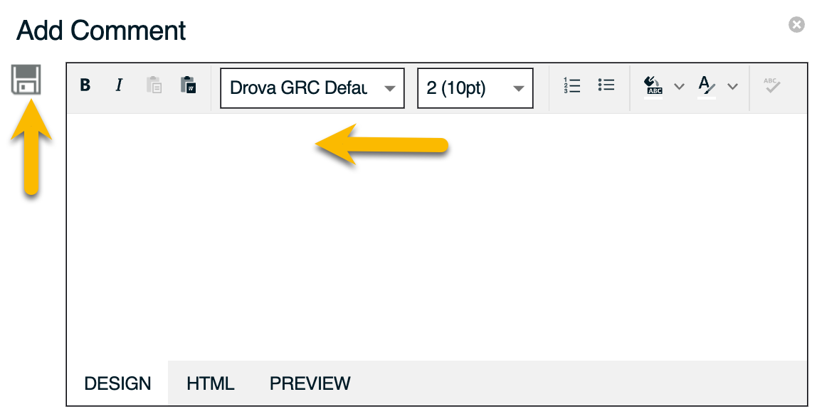 The Add Comment window displays. Enter in your text, then click the Save icon; or click the Cancel icon to stop adding a comment.