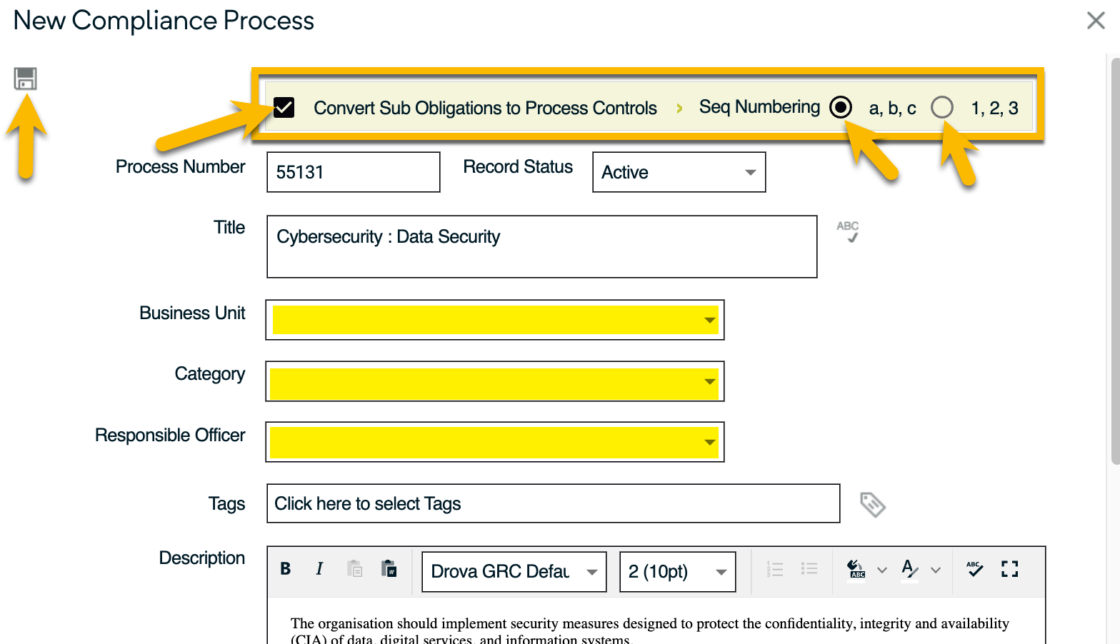 Creating a Compliance Process With Sub Obligations as Process Controls