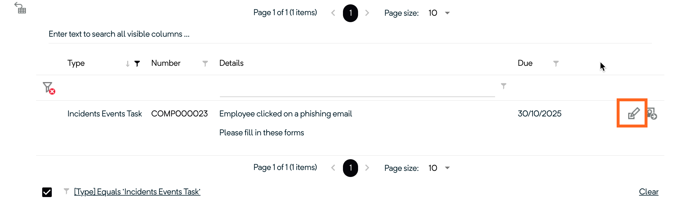 - Click the icon to complete the task and a pop-up will appear.