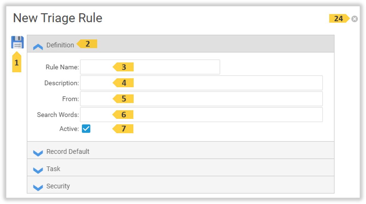 | 1 | ‘New Triage Rule’ icon | Click this icon to add a New Triage Rule. |