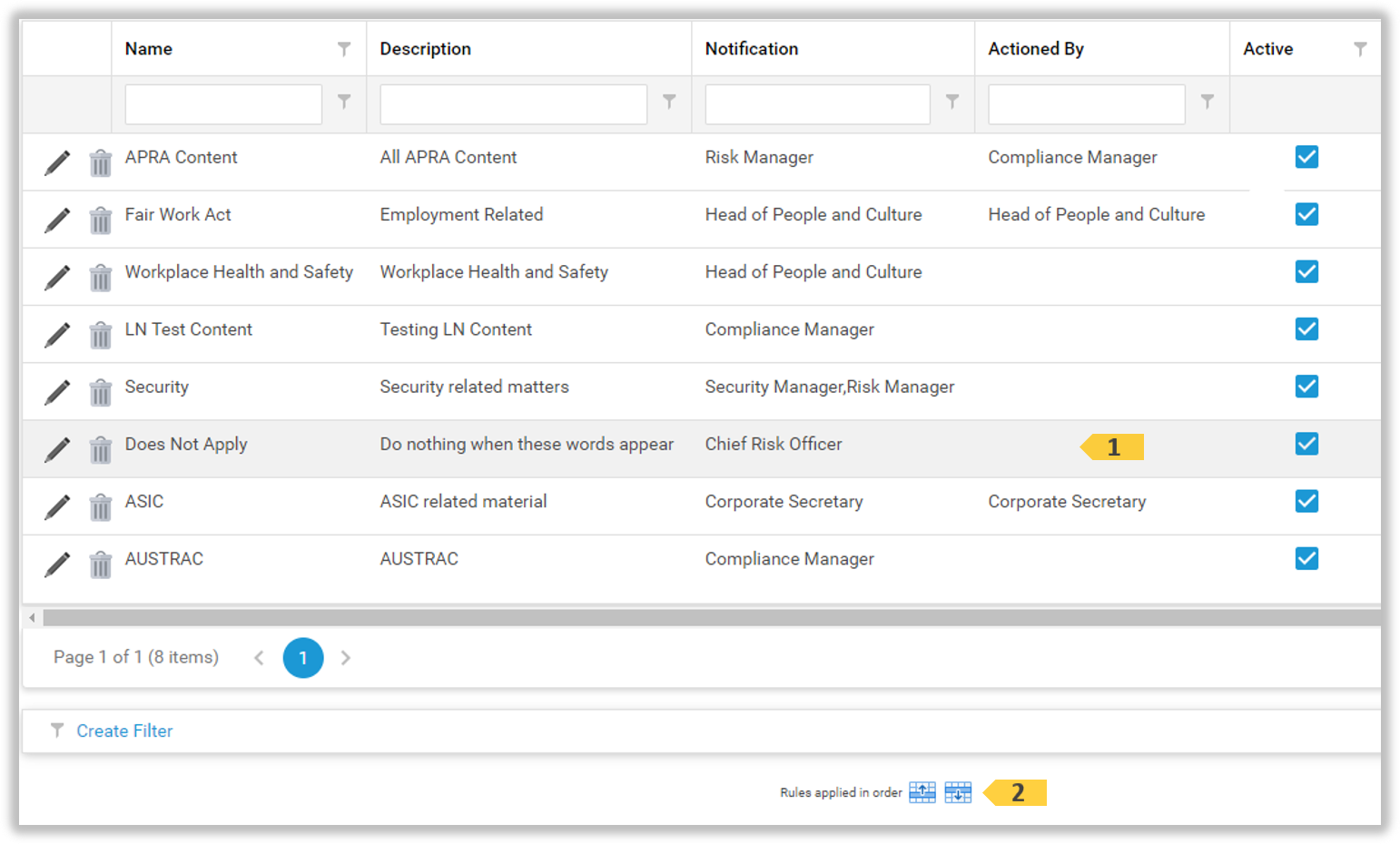 | 4 | ‘Show Advanced Filter’ icon | Click this icon to filter the Triage PRO Rules list using the Filter builder. |