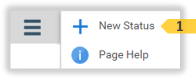 On the ‘Status’ page, hover over the Options Menu icon to display the options. Click the ‘New Status’ 1 icon.