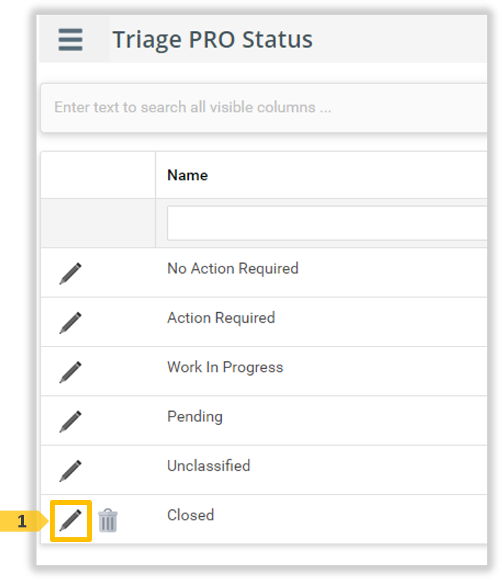 The Triage PRO Statuses are defined by you to identify the progression of each step of Triage PRO record.