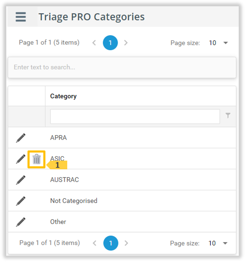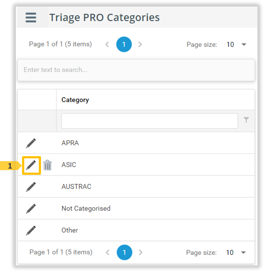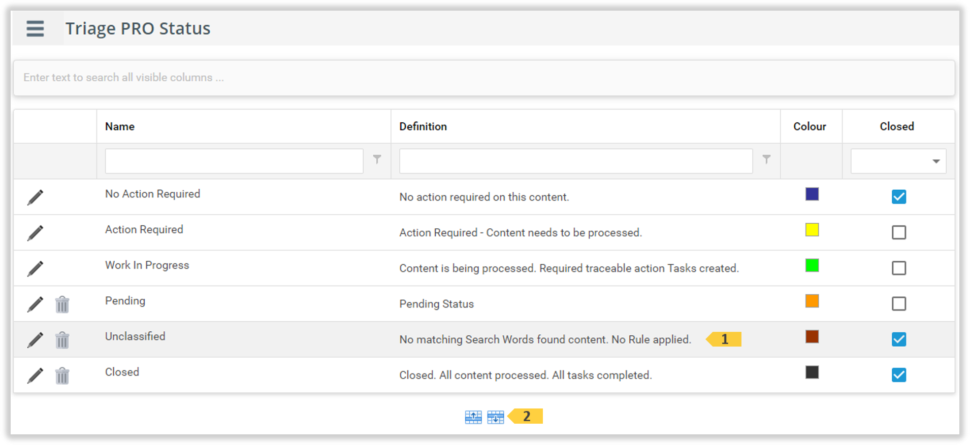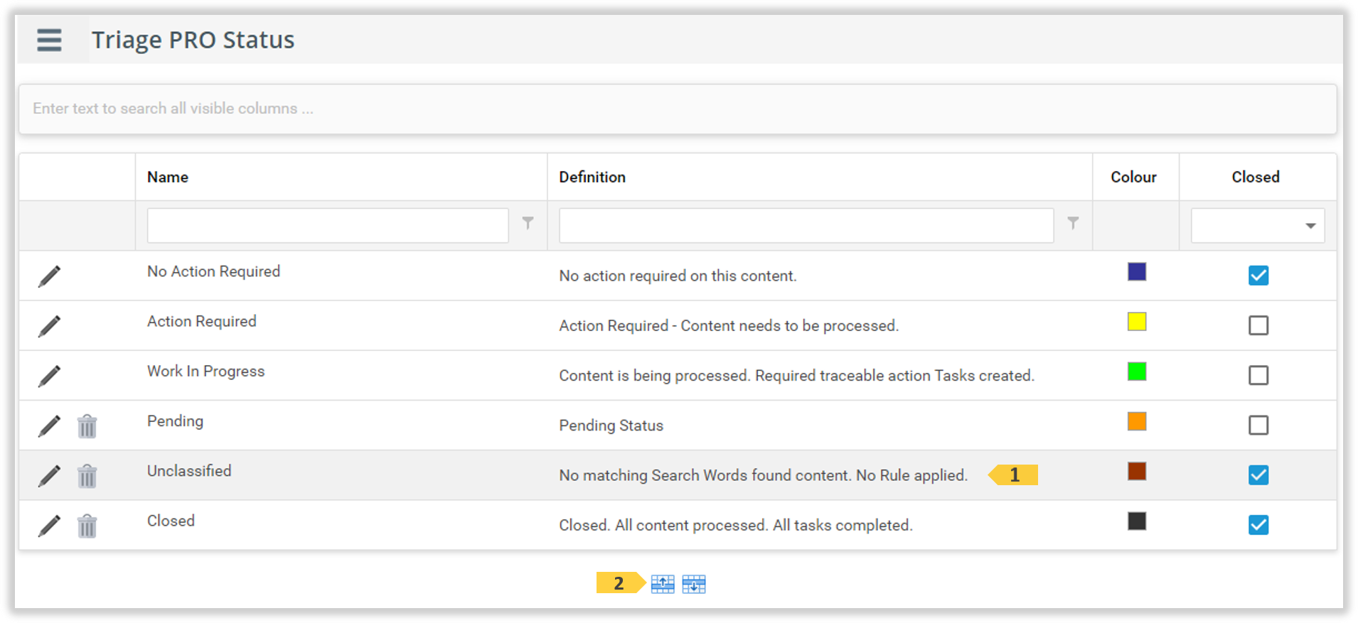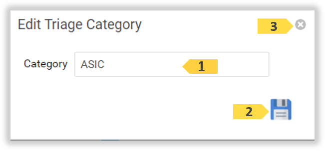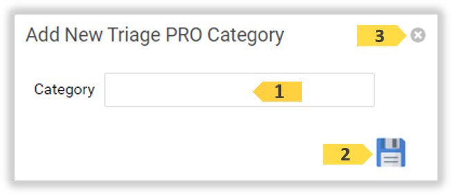 | 1 | ‘New Category’ icon | Click to add a new Triage PRO current record Status. |